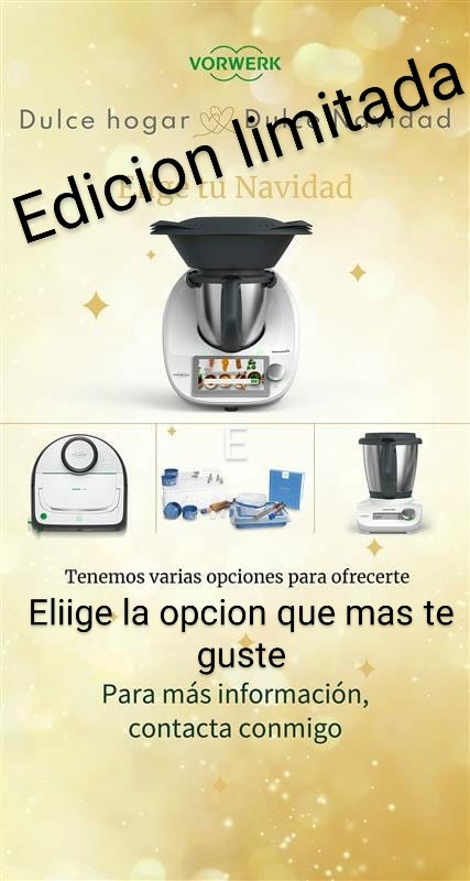 Solo por unos dias y con unidades limitadas tenemos en el mercado unas ediciones especiales. No te pierdas la ocasion de tener en cada tu Thermomix. No te arrepentiras. Tu tiempo es horo y thermomix nos da sobretodo tiempo para poder utilizarlo en lo que tu quieras. Solo tienes que llamarme y elegir la que mas te guste