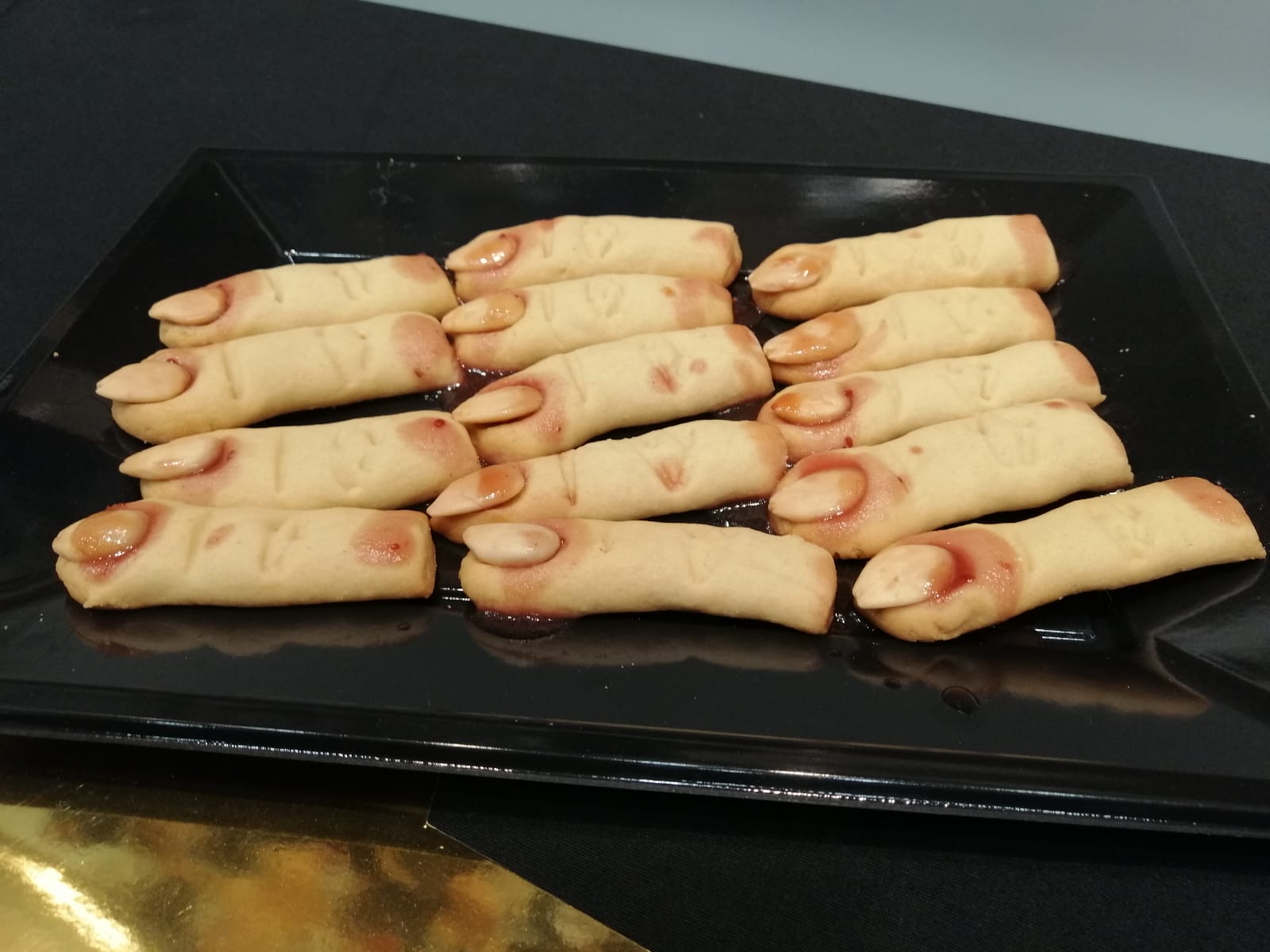 Se acerca una noche muy divertida. Una ocasion para disfrazarnos y pasarlo bien. No solo nos disfrazamos nosotros sino que tambien nuestras galletas. Estos dedos sangrientos estan para chuparse.