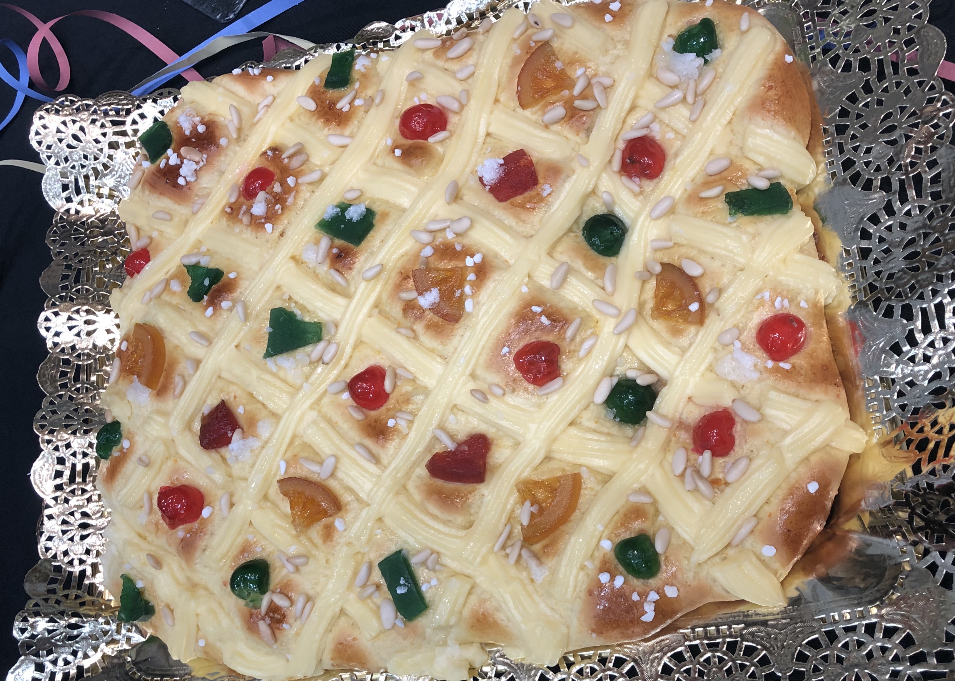 - piñones, frutas confitadas, azúcar o crema pastelera para decorar