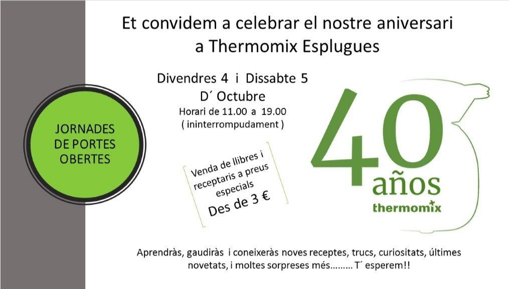 No t’ho pots perdre!!. Vina amb que vulguis, familia, amics... Son 40 anys de Thermomix!!! I ho volem celebrar amb tots els nostres clients!! T’esperem!!