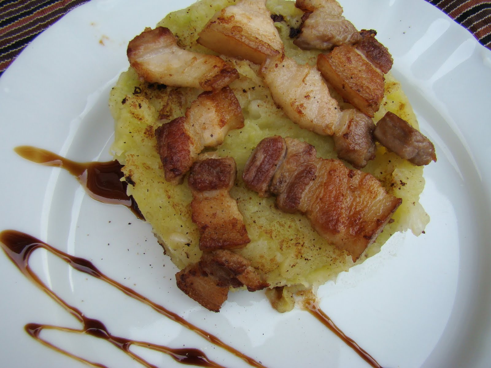 7. En una sartén a fuego fuerte salteamos el resto de la panceta (150 gr.) y la butifarra negra si la vamos a utilizar y servimos junto al trinxat de col.