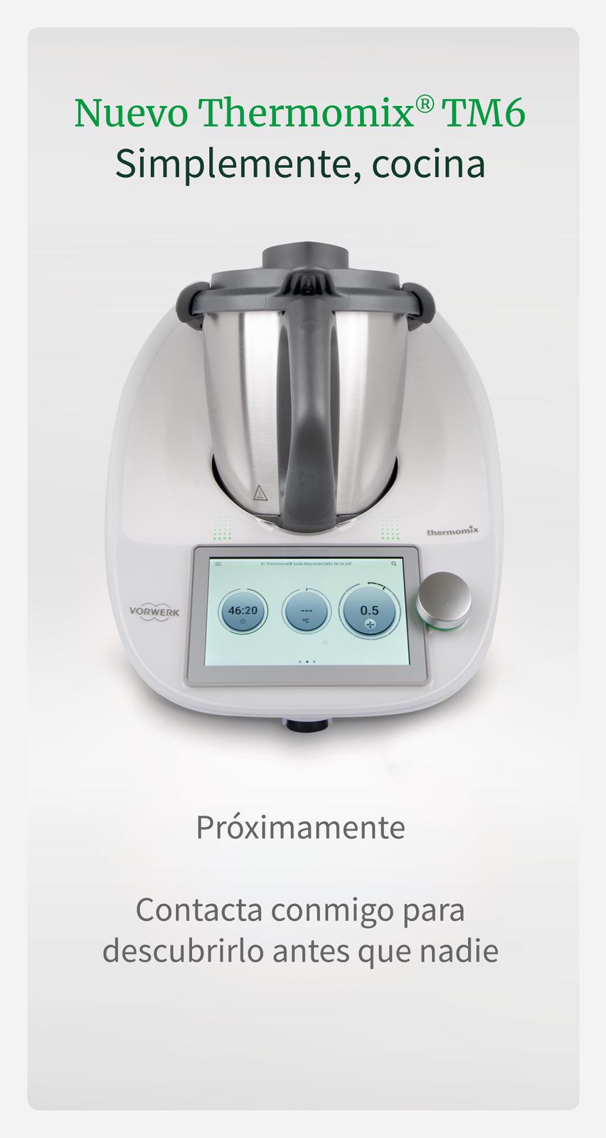 Hola , a todas/os os traigo una noticia BRUTAL... ha salido una nueva tm6 es una autentica maravilla , tiene más funciones que la tm5 , cocción lenta, al vacío entre otras , su pantalla es como una tablet , cookidoo esta incorporado.. vamos una pasada, si quieres conocerla , te hago una DEMOSTRACIÓN sin compromiso